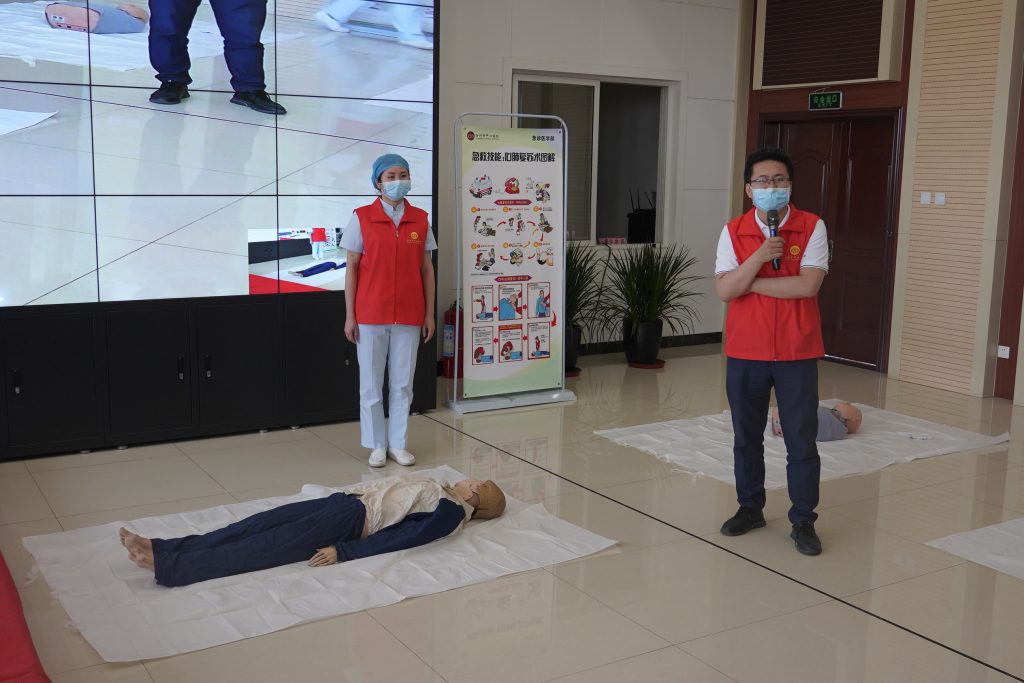 活動(dòng)現(xiàn)場(chǎng),王主任詳細(xì)介紹了現(xiàn)代應(yīng)急救護(hù)的新模式及程序。傳授大家如何正確撥打急救電話,強(qiáng)調(diào)應(yīng)急救護(hù)原則及注意事項(xiàng)。同時(shí)普及了心肺復(fù)蘇的程序、方法,創(chuàng)傷救護(hù)、應(yīng)急救護(hù)的四項(xiàng)技術(shù)等知識(shí)。