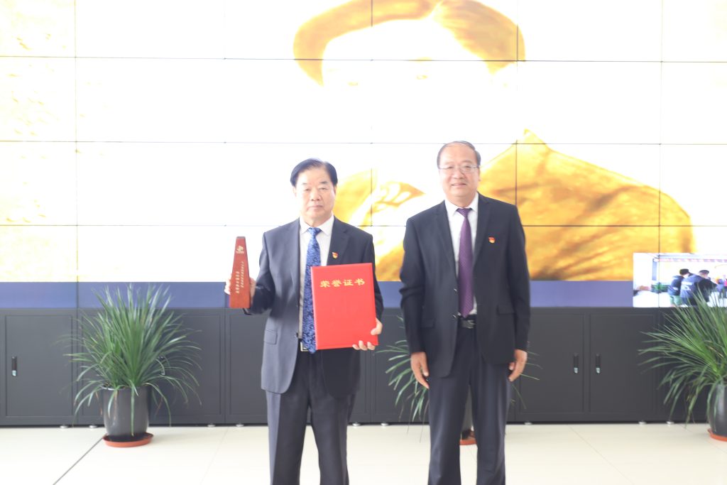 路橋公司公司書記王瑞生(41周年)。大元集團(tuán)副總裁郝書明為其頒獎(jiǎng)。