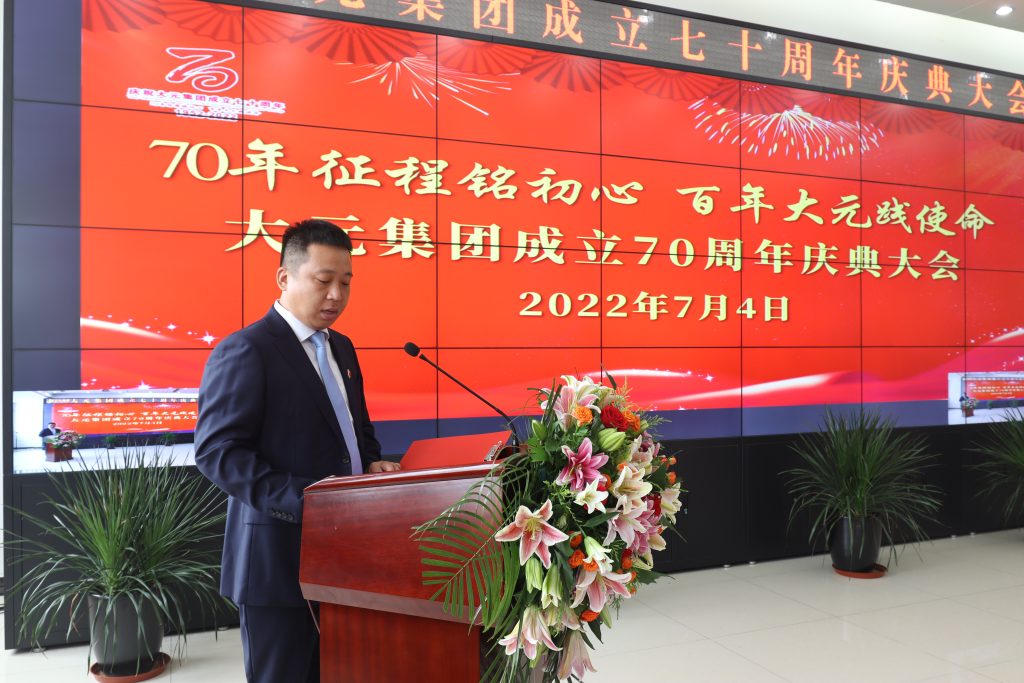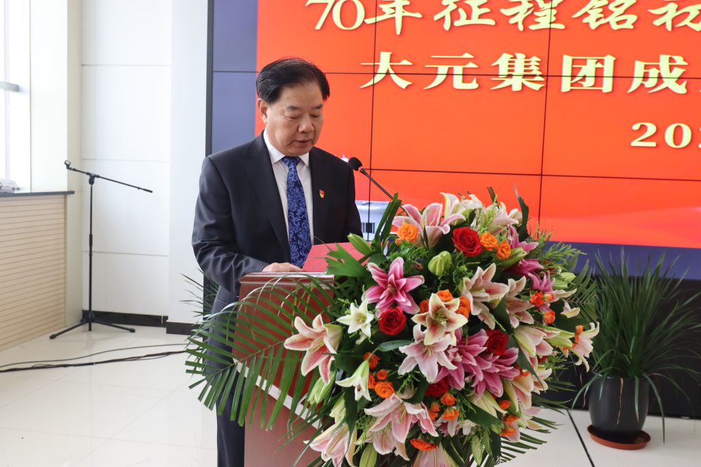 “今天,是大元集團(tuán)成立70周年慶典大會(huì),更是開啟2052百年大元新征程的誓師大會(huì)。初心易得,始終難守。我們要用歷史映照現(xiàn)實(shí)、遠(yuǎn)觀未來,從大元集團(tuán)70年奮斗史中看清楚過去我們?yōu)槭裁茨軌虺晒?、弄明白未?0年我們?cè)鯓幽軌蚋映晒Γ瑥亩谛碌恼魍局懈訄?jiān)定、更加自信地履行初心使命,踐行百年大元…”李主席就集團(tuán)70年發(fā)展史及未來百年目標(biāo)作報(bào)告。